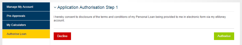 - You will receive a text to your eMoney registered mobile number confirming the loan is approved and ready for your authorisation.